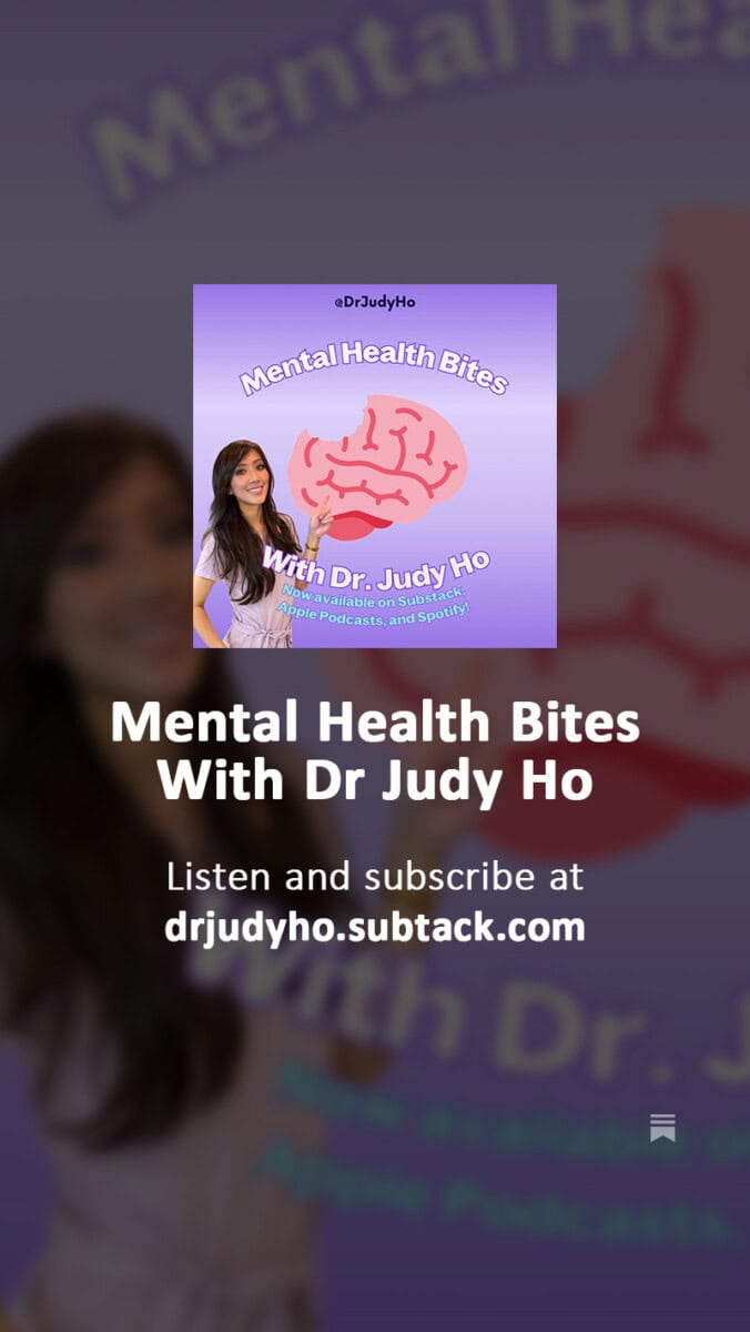 Podcast Podcast Welcome to Mental Health Bites with Dr. Judy! In just 10 minutes, we dive into a hot topic, answer your burning questions, and leave you with a practical tip to improve your mental wellness. 🌟 Apple PodcastSpotify PodcastSubstack PodcastYouTube Podcast Listen on Apple Podcasts Listen on Spotify Podcasts Watch on YouTube Podcast